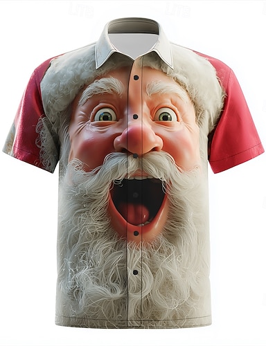 Weihnachten Herren Weihnachtsmann Menschliches Gesicht lustige weihnachten Hemd Knopfhemd Kurzarm Lustig Outdoor Ferien Sommer Frühling Umlegekragen 3D-Druck Hemden mit Kragen Weiß Rote Gold
