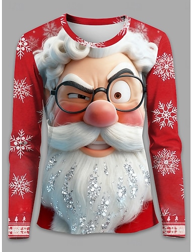 Weihnachten Damen T Shirt Grafik Weihnachtsmann Mode Lässig Langarm Rundhalsausschnitt Rundhals Normale Oberteile Täglich Wochenende Druck Rote Blau Grün Sommer Frühling Herbst Winter