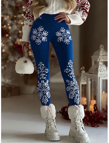 Damen Leggings Urlaub Vintage Ethno-Stil Volle Länge Hohe TaillePantsWeihnachten Grafik Schneeflocke Weihnachten 3D-Druck Schnelltrocknend Atmungsaktivität Weich Dehnbar Formell Outdoor Urlaub