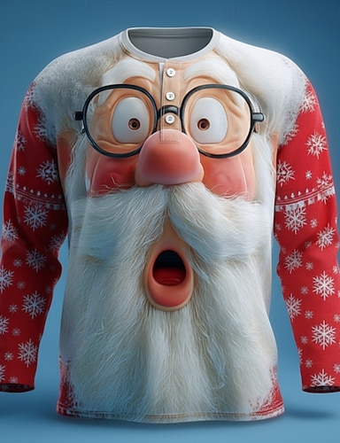 Herren Weihnachten Weihnachtsmann Henley Hemd Langarm Mode Niedlich Täglich Lässig Ferien Ausgehen Winter Frühling & Herbst Rote Henley Henley T-Shirt