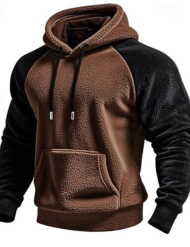 Herren Kapuzensweatshirt Fleece Kapuzensweatshirt Armeegrün Braun Khaki Grau Mit Kapuze Einfach Patchwork Farbblock Sport & Outdoor Lässig Täglich Streetwear Cool Sportbekleidung Winter Bekleidung