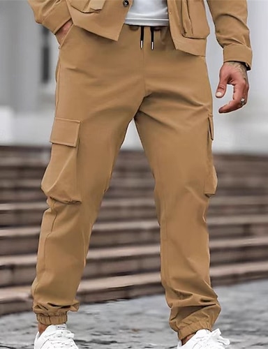 Herren Cargo-Jogginghose Jogginghose Hose Kordelzug Tasche Elastischer Bund Einfach Komfort Sport im Freien Täglich Mode Lässig Armeegrün Schwarz Mikroelastisch