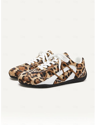 Damen-Sneaker mit Leopardenmuster zum Schnüren, leichte, lässige Fashion-Sneaker für Streetwear, Reisen &Alltagsoutfits