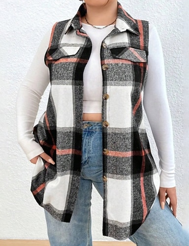 Damen Weste Bequem Tasche Knöpfe Lässig Karomuster Urlaub Straße Lässig Alltagskleidung Kurz Umlegekragen Normale Passform Ärmellos Oberbekleidung Rosa Wein Orange Herbst Winter