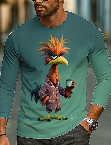 Herren Tiermotiv Lustig T Shirt Langarm T-Shirt 3D-Druck Rundhalsausschnitt Hemd Mode Basic Straße Lässig Täglich Dunkelviolett Violett Grün Sommer Frühling Bekleidung S M L XL XXL XXXL