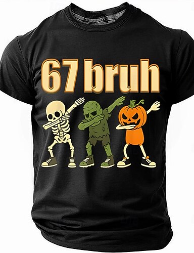 Halloween lustiges '67 Bruh' Herren Kurzarm Crewneck T-Shirt, Skelett Zombie Kürbis Dabbing Grafik T-Shirt
