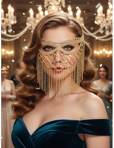 Damen-Maskenkopfbedeckung mit goldener Quaste – elegantes Gesichtsaccessoire mit Kristallfransen für Kostümbälle und Partys