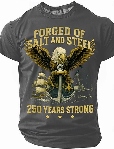 Herren Amerikanische US-Flagge Adler 250. Jahrestag der Vereinigten Staaten T Shirt Kurzarm T-Shirt 3D-Druck Rundhalsausschnitt Hemd Täglich Militär Straße Täglich Schwarz Rote Blau Sommer Frühling