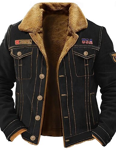 Herren USA Fleecejacke Cargo-Jacke Sherpa-Jacke Taktisch Thermowarm Vintage Outdoor Heim Bestickt Mehrere Taschen Wintermäntel Herbst Winter Fleece-Umlegekragen Langarm Armeegrün Dunkelblau