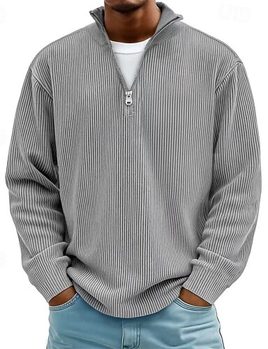 Herren Poloshirts Viertel-Reißverschluss-Poloshirt Alltagskleidung Date Viertelreißverschluss Langarm Mode Basic Einfach Reißverschluss Frühling Herbst Normale Passform Schwarz Weiß Wein Marinenblau