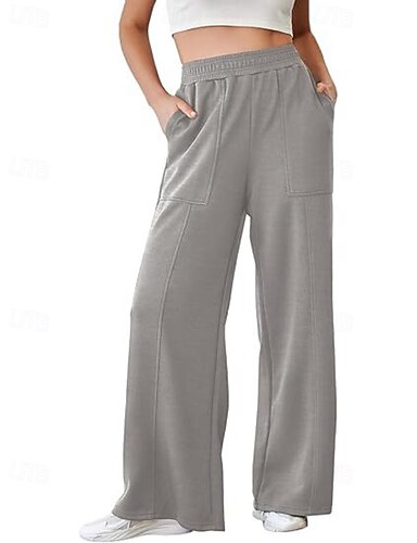 Damen Weites Bein Chinos Streetwear Lässig Volle Länge Mittlere Taillenlinie Einfach Tasche Elastischer Bund Bequem Mikroelastisch Outdoor Urlaub Täglich Schwarz Weiß Armeegrün Dunkelmarine Herbst