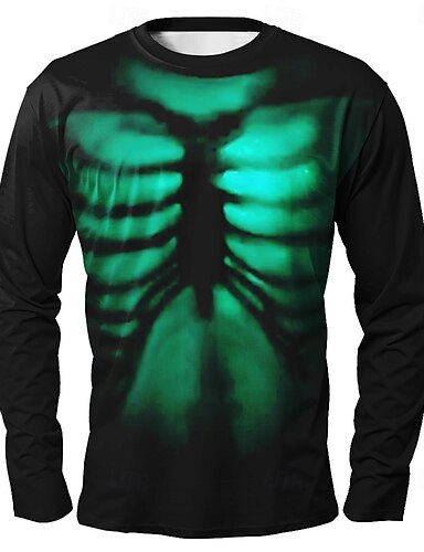 Halloween Herren 3D Flamme Skelett T Shirt Langarm T-Shirt 3D-Druck Rundhalsausschnitt Hemd Mode Übertrieben Straße Lässig Täglich Rote Blau Grün Sommer Frühling Herbst Bekleidung S M L XL XXL XXXL
