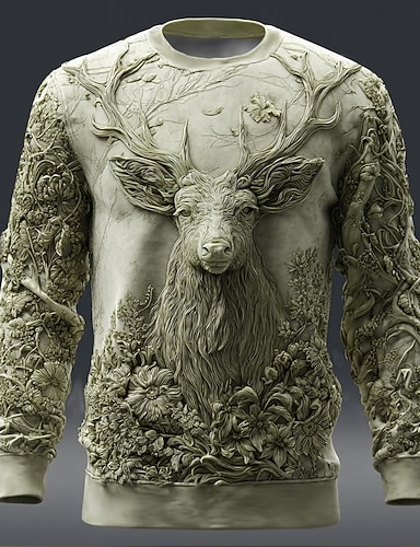 Herren 3D-Druck Hirsch Pullover Lässig Rundhalsausschnitt Urlaub Party Geschenk Grün Khaki Rundhalsausschnitt 3D Ganzjahres Designer