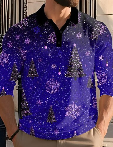 Weihnachten Herren Laternen Polo Langarm Polo-Shirts Revers Lässig Outdoor Straße Athleisure Festival-Outfit 3D-Druck Knöpfe Frühling Herbst Winter Rote Purpur Grün