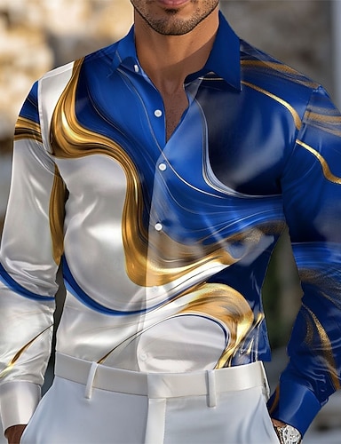 Herren Geometrisch Farbverlauf Abstrakte Kunst Hemd Satinhemd Kleidhemd Langarm Modisch lässig Urlaub Alltagskleidung Sommer Frühling Herbst Umlegekragen 3D-Druck Hemden mit Knopfleiste Blau Rosa