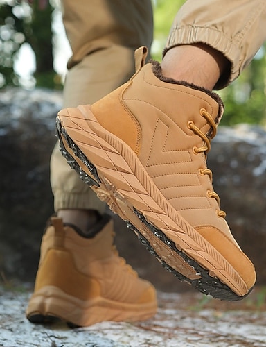 Herren rutschfeste warme Winter-Wanderstiefel mit Fellfutter, lässige Outdoor-Knöchel-Sneaker für kaltes Wetter
