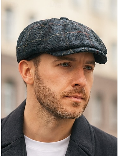 Herren-Zeitungsjungenmütze im Vintage-Stil mit Fischgrätenmuster – klassischer flacher Tweed-Efeuhut, Baskenmütze im Retro-Gatsby-Stil für Freizeitkleidung und Partys im Freien