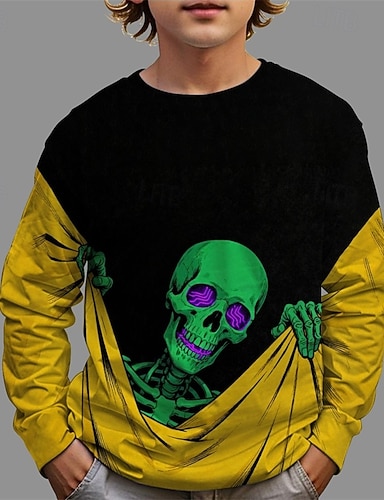 Halloween Jungen 3D Schädel Sweatshirt Langarm Frühling Herbst Mode Basic Kinder 4-12 Jahre Rundhalsausschnitt Outdoor Lässig Täglich Normale Passform