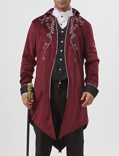Mittelalterlich Renaissance Steampunk Mantel Frack Oberbekleidung Prinz Vampir Edelmann Kostüm Herren Halloween Karneval Leistung LARP Renaissance-Messe Erwachsene Weste