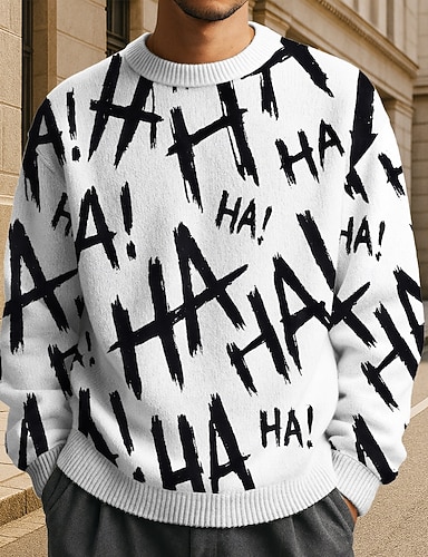 Herren Text Pullover Strickware Rundhalsausschnitt Lässig Urlaub Täglich 3D-Druck Stricken warm halten Langarm Frühling Herbst Winter Schwarz Weiß