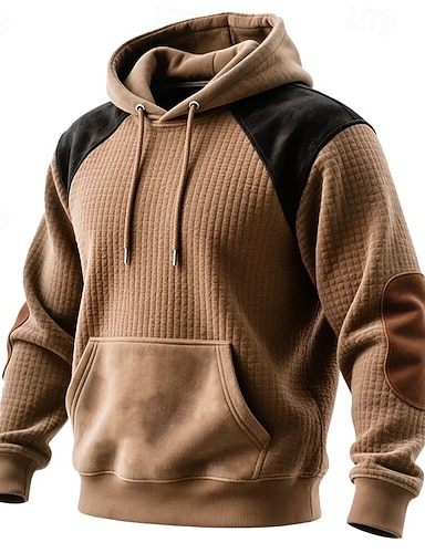 Herren Kapuzensweatshirt Waffle Kapuzensweatshirt Pullover Kapuzensweatshirt Khaki Mit Kapuze Einfach Patchwork Farbblock Strukturiert Sport & Outdoor Lässig Täglich Streetwear Cool Sportbekleidung