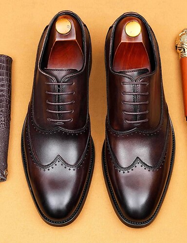 Dunkelbraune Oxford-Schuhe aus echtem Leder mit Brogue-Details für Herren, klassische Schnürschuhe für formelle Anlässe im Business, Büro und bei Hochzeiten