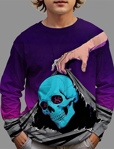 Halloween Jungen 3D Schädel T-Shirt Langarm Frühling Herbst Mode Basic Kinder 4-12 Jahre Rundhalsausschnitt Outdoor Lässig Täglich Normale Passform