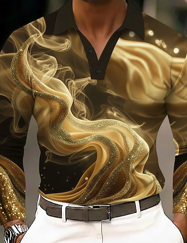 Herren Abstrakt Geometrisch Polo Langarm Polo-Shirts Revers Business-Casual Outdoor Athleisure Alltagskleidung 3D-Druck Knöpfe Frühling Herbst Winter Blau Gold Grün