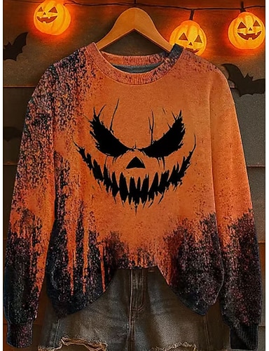 Damen Sweatshirts Grafik Kürbis Halloween Mode Lässig Langarm Rundhalsausschnitt Normale Oberteile Straße Alltagskleidung Lässig Druck Gelb Orange Herbst Winter