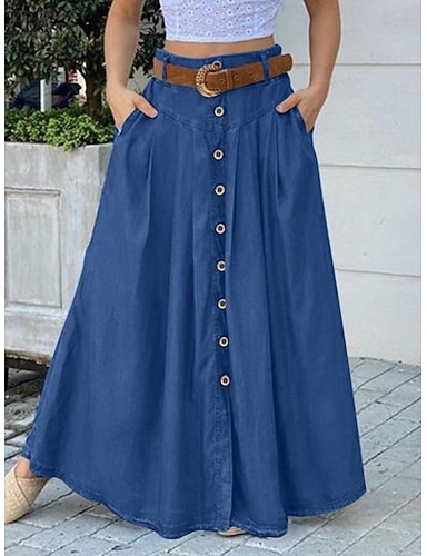 Damen Rock A-Linie Mode Lässig Maxi Hohe Taille Röcke Einfach Tasche Mikroelastisch Straße Täglich Schwarz Rote Königliches Blau Frühling Polyester