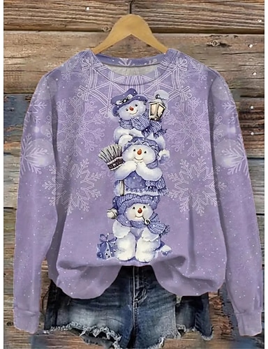 Damen Pullover Sweatshirt Grafik Weihnachtsmann Schneemann Mode Lässig Langarm Rundhalsausschnitt Normale Oberteile Straße Alltagskleidung Lässig Druck Violett Purpur Braun Grau Herbst Winter