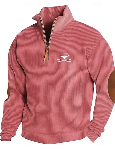 Herren Sweatshirt Kord Pullover Kapuzensweatshirt Pullover Schwarz Rosa Armeegrün Marineblau Khaki Stehkragen Halber Reißverschluss Einfach Patchwork Sport & Outdoor Lässig Täglich Streetwear Cool