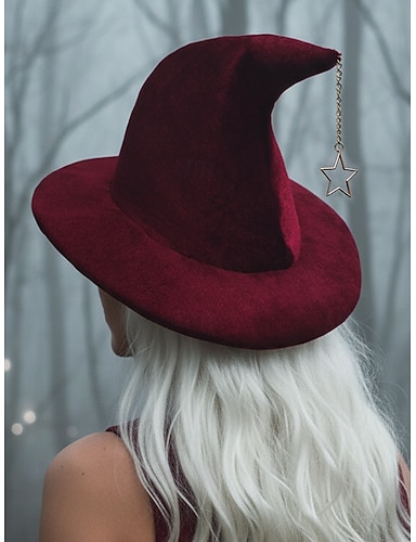 Damen Halloween Hexenhut – Samtspitz-Zaubererhut mit Sternanhänger für Kostümparty, Cosplay und Festival