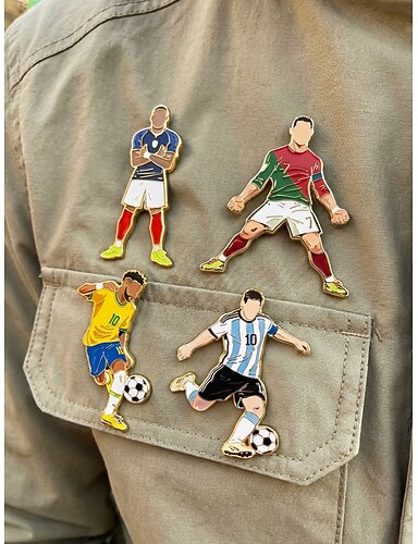 Fußballspieler-Anstecknadel-Set für Herren aus einer Legierung, 4-teiliges Set mit Anstecknadeln für Fußball-Sportarten, ideal zum Anfeuern am Spieltag, zur Fanunterstützung, für Sportveranstaltungen