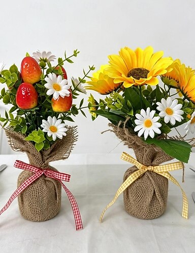 1/2-teiliges Set mit Erdbeer-, Gänseblümchen- und Sonnenblumen-Pflanztopf, ideal für drinnen und draußen. Das Set enthält farbenfrohe Erdbeer-, Gänseblümchen- und Sonnenblumenpflanzen für die