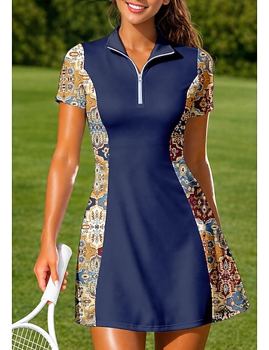 Damen Geometrisch Blumenmuster Sportkleid Tennis Polo Kleid Kurzarm Viertel Postleitzahl Elastisch Schweißableitend Atmungsaktiv Volleyball Tennis Golfspiel Umlegekragen Kleid Blau Tennisbekleidung