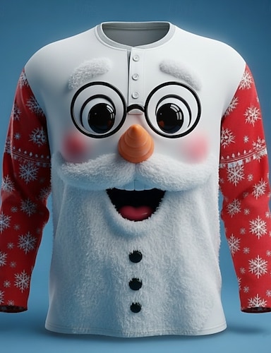 Herren Weihnachten Schneemann Schneeflocken Henley Hemd Langarm Mode Niedlich Täglich Lässig Ferien Ausgehen Winter Frühling & Herbst Weiß Henley Henley T-Shirt
