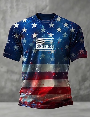 Herren Kreuz Amerikanische Flagge Kurzarmshirt T-Shirt Kurzarm T-Shirt 3D-Druck Rundhalsausschnitt Hemd Mode Designer Lässig Urlaub Täglich Ferien Schwarz Weiß Marineblau Ganzjahres Bekleidung S M L
