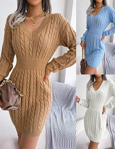 Damen Minikleid Pulloverkleid Bodycon Etui-Kleid Mode Modern Urlaub Ferien Wochenende Normale Passform Einfach Langarm V Ausschnitt Schwarz Weiß Blau Braun Frühling Herbst
