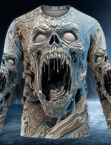 Halloween Herren Schädel T Shirt Langarm T-Shirt 3D-Druck Rundhalsausschnitt Hemd Mode Übertrieben Straße Lässig Täglich Rote Blau Purpur Sommer Frühling Herbst Bekleidung S M L XL XXL XXXL