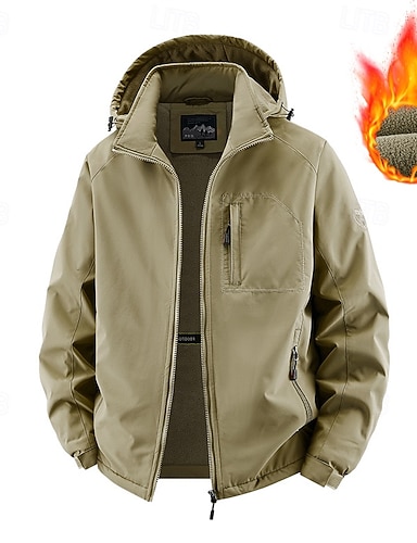 Herren Fleecejacke Kapuzenjacke Formell Heim Windjacke Tasche Abnehmbare Kapuze Winter Frühling & Herbst Einfarbig Aktiv Neutral Mit Kapuze Regulär Schwarz Marineblau Grün Khaki Jacken
