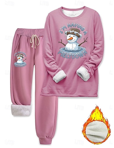 Damen Elegant Warm Mode Zweiteilige Sets Trainingsanzug Hosen-Sets Langarm Bischofsärmel Rundhalsausschnitt Grafik Buchstabe Druck Outdoor Urlaub Täglich Rosa Blau Grau Frühling Normale Passform