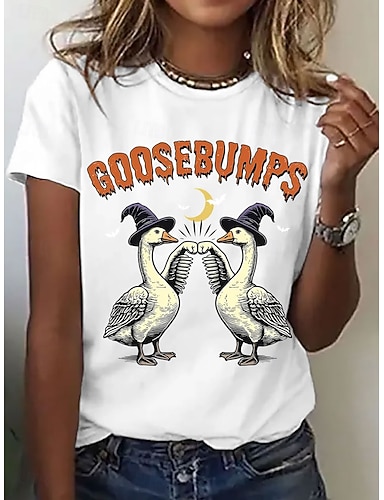 Halloween Damen T Shirt Grafik Tiermotiv Buchstabe Vintage Stilvoll Klassisch Kurzarm Rundhalsausschnitt Normale Oberteile Täglich Ausgehen Wochenende Druck Schwarz Weiß Blau Grau Sommer