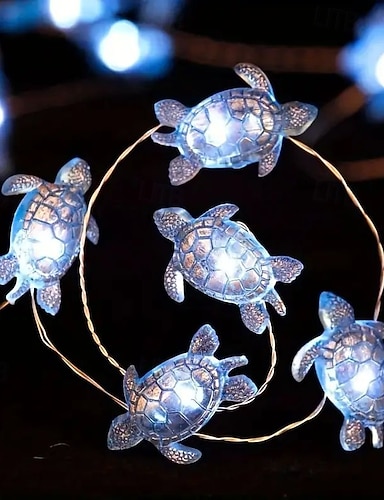 LED-Lichterkette mit Meeresmotiv, 2 m, 20 LEDs, batteriebetrieben, blauer Seestern, grüne Schildkröte, Deko-Lichterkette für Weihnachten, Geburtstagsfeier, Hochzeit, Zuhause, Schlafzimmer,