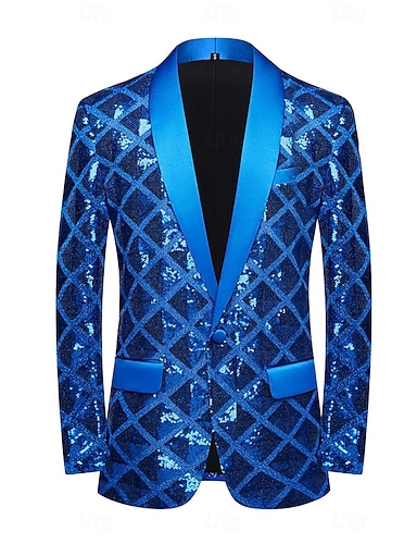 Herren Blazerjacke Schalkragen Party Kariert Blazer Schwarz Silber Rosa Schmale Passform Einreihig Ein-Knopf