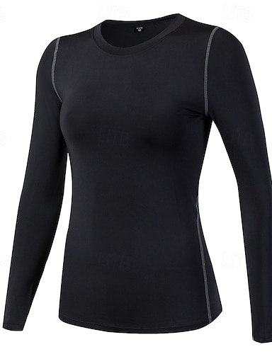 Damen Sportshirts Flacher Ausschnitt Elastisch schweißabsorbierend Enge Passform Langarm Sport Einfarbig Oberteil Für Pilates Fitnessstudio Laufen Sportkleidung