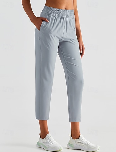 Damen Pilates-Hosen Yogahose Caprihose Mit Taschen Leicht Hohe Taille Fitnessstudio Pilates Zumba Unterteile Einfarbig Khaki Grau Herbst Sport Sportkleidung Mikroelastisch Lässiger Schnitt
