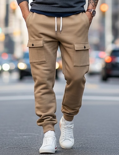 Herren Cargo-Jogginghose Jogginghose Hose Kordelzug Tasche Elastischer Bund Einfach Komfort Sport im Freien Täglich Mode Lässig Armeegrün Schwarz Mikroelastisch