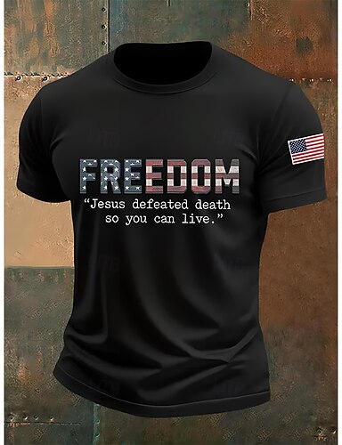 Herren Zitate & Sprüche Amerikanische Flagge Kurzarmshirt T-Shirt Kurzarm T-Shirt 3D-Druck Rundhalsausschnitt Hemd Mode Designer Lässig Urlaub Täglich Ferien Schwarz Weiß Rote Ganzjahres Bekleidung