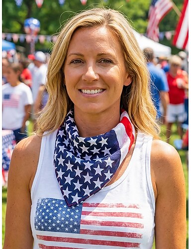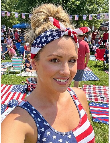 Zweiteiliges Bandana-Set aus Baumwolle im Boho-Stil mit amerikanischer Flagge für Damen, vielseitiges Kopftuch und Halstuch für den 250. Jahrestag der USA, den Unabhängigkeitstag, Festivals und den